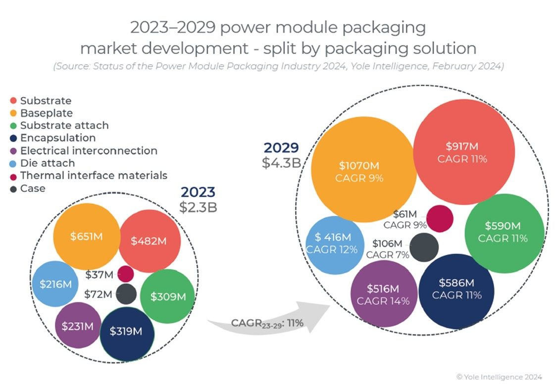 2024.11.05丨Yole報告 :2023-2029年功率模塊封裝材料市場規(guī)模將翻倍,達43億美元